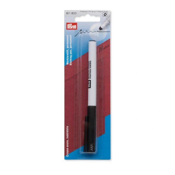 The permanent marking pen from Prym is particularly suitable for making markings. The permanent marker, a black waterproof fiber pen, should be stored vertically with the lead tip down. With a lead thickness of 2 mm, excellently thick lines can be drawn on lighter and differently colored fabrics. The fine design of the marking pen is particularly suitable for very fine markings and lettering on the fabric. These waterproof permanent markers can also be used to mark cutting patterns and templates without any problems.