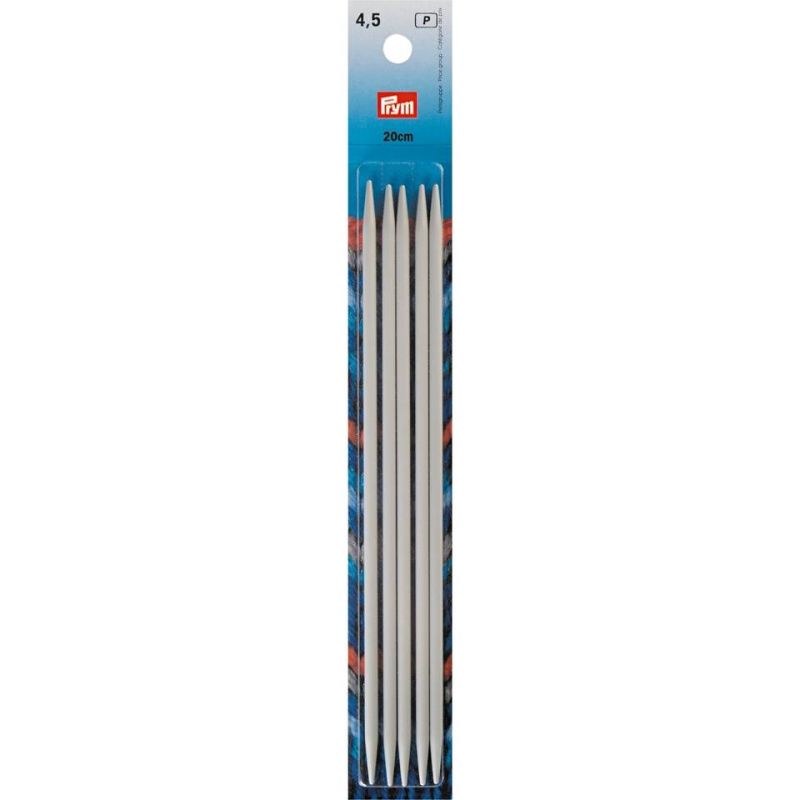 This wide range of Prym double-pointed knitting needles in a large number of gauges and lengths offers a solution for every need. The knitting needles are suitable for all circular knitting projects - from stockings and socks through caps to gloves and much more. Their smooth, non-slip surface allows the stitches to glide smoothly over the needles and so knitting becomes relaxing, even over long periods. The neutral grey colour allows you to see the stitches clearly. These double-pointed knitting needles are light and are available up to gauge 5.0 mm in pearl-grey aluminium. As from gauge 5.0 mm the needles are made from grey plastic.