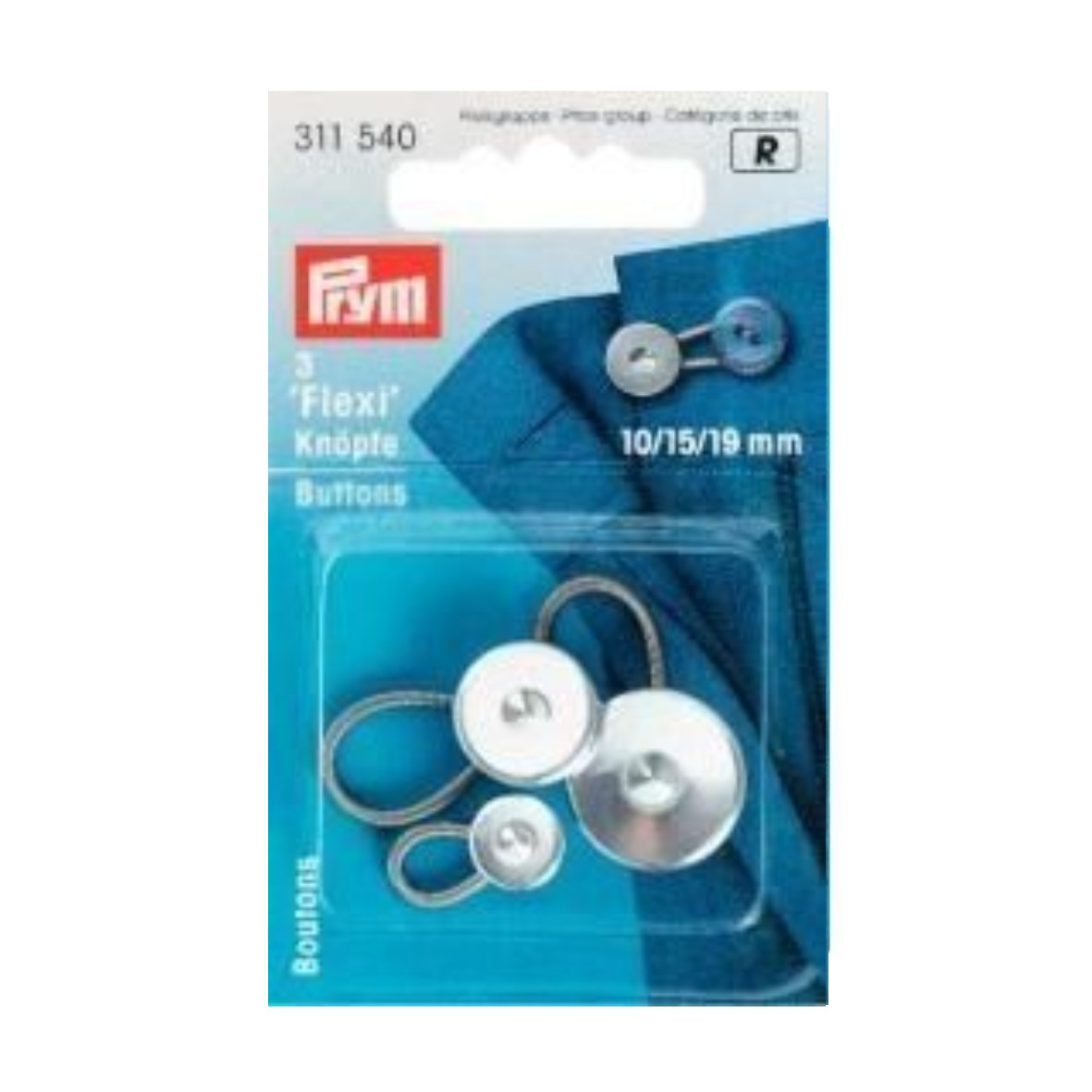 These metal Flexi buttons are available in case the collar or waist size varies. Thanks to their flexible spring steel loop, they are fastened to the regular button and can then be conveniently closed with the button hole. These practical Flexi buttons are available in assorted sizes of 10, 15, and 19 mm or in 3 units each in sizes 15 mm, and 19 mm.
