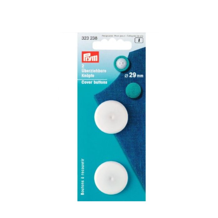 The button blanks made of white or black plastic are available in different sizes between 11 mm and 38 mm. There are no limits to your creativity with these buttons, because you can make the right button for every personal creation. The illustrated instructions on the back of the pack explain how easy it is in four steps. A template for cutting out the fabric in a circle is also shown. Depending on the textile used, the finished buttons can be washed at up to 60 degrees. They are also available in bulk packs of 50 or 100 for professional use.